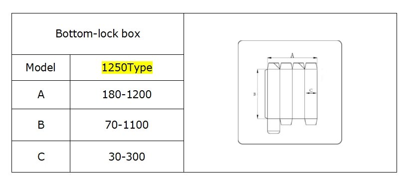 For lock bottom boxes: it supports only up to 3 layers (e.g., B, C, etc.) because, in 5-layer structures, some corners may have 5×5 overlapping layers, which makes the corrugated board prone to bursting.